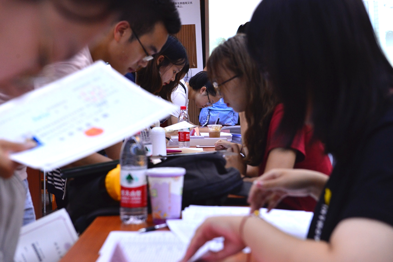 8月20日上午7:00,一群勤劳勇敢、默默奉献的优秀研究生骨干和暑期团校新生组成迎新志愿者,他们集合在生物新馆143,开始进行伟大而光荣的工作——布置迎新场地、准备迎新材料并进行分工。志愿者们就位后,新生们陆陆续续来到迎新现场。