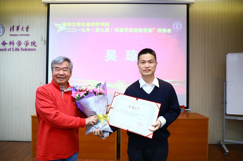 颁奖仪式第二项,颁发的是“郑昌学优秀教学奖”。生命学院副院长、本科生工作委员会主任刘栋介绍了“郑昌学优秀教学奖”的由来,并代表学院宣读颁奖决定。按照“郑昌学优秀奖”评审办法,经评审委员会评审,郑昌学教学奖励基金理事会讨论通过, 二〇一九年(第九届)“郑昌学优秀教学奖”的获得者是:吴琼老师。